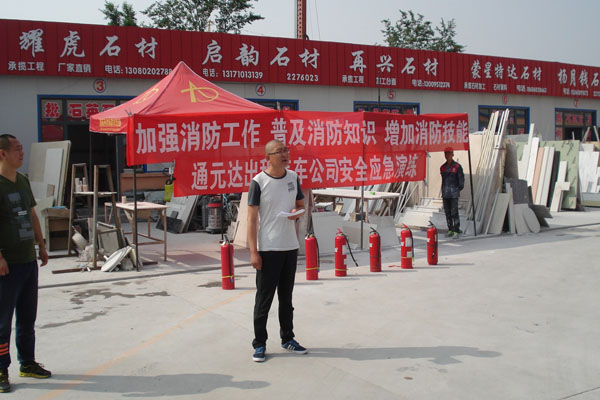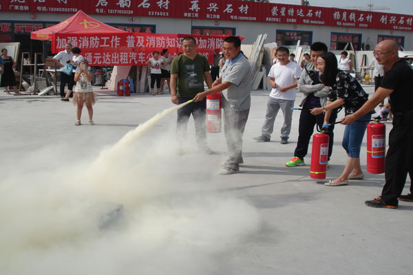 為(wèi)了(le)進一(yī)步強化(huà)建材市(shì)場(chǎng)員(yuán)工(gō£ng)及商戶的(de)消防安全意識,提高(gāo)火(huǒ)災防控能(néng)力,建材市(shì)場(chǎng)于2016年(nián)7月(yuè) 6日(rì)上(shàng)午9時(shí),在石材區(qū)小(xiǎo)廣場(chǎng),組織開(kāi)展了(le)一(yī)次滅火(huǒ)實戰演練。