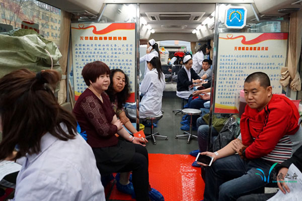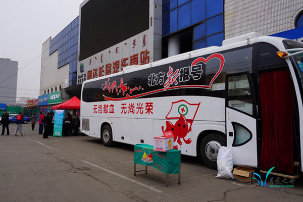 獻血車(chē)早早來(lái)到(dào)站(zhàn)前廣場(chǎng)