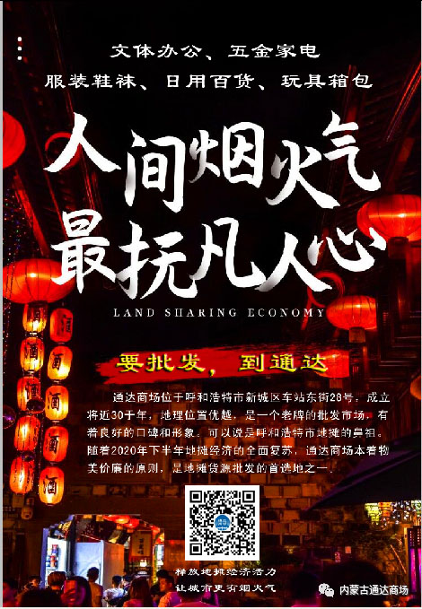 人(rén)間(jiān)煙(yān)火(huǒ)氣,最撫凡人(rén)心,值此"地(dì)攤經濟"來(lái)臨之時(shí)內(nèi)蒙古通(tōng)達商場(chǎng)÷誠邀廣大(dà)市(shì)民(mín)朋(péng)友(yǒu)們前來(lái)選購(gòu)。