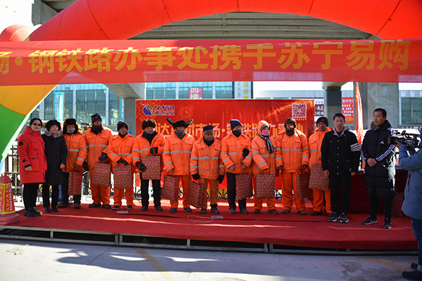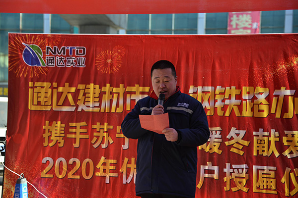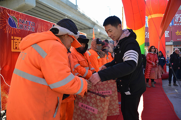 2020年(nián)11月(yuè)29日(rì)舉行(xíng)了(le)通(tōng)達建材市(shì)場(chǎ←ng)2020年(nián)暖冬活動以及優秀商戶授匾儀式。整體(tǐ)活動分(fēn)為(wèi)三部分(fēn),®1.由市(shì)場(chǎng)主導定制(zhì)沖鋒衣,蘇甯易購(gòu)出資,共同為(wèi)市(shì)場(chǎng)以及周邊裝卸工(gōng)提供暖冬定制(zhì)沖鋒衣。2.✔聯合鋼鐵(tiě)路(lù)辦事(shì)處,召集周邊環衛工(gōng)人(rén),發放(fàng)采購(gòu)好(hǎo)的(de)保暖 慰問(wèn)品和(hé)定制(zhì)水(δshuǐ)杯。3.公布優秀商戶名單,并進行(xíng)授匾儀式。王總在活動當中講到(dào)“我們要(yào)共同努力✔克服每一(yī)個(gè)困難,隻要(yào)路(lù)的(de)對(duì)的(de),就(jiù)不(b÷ù)怕路(lù)遠(yuǎn)”樹(shù)立了(le)商戶對(duì)未來(lái)的(de)信心。整體(tǐ)過程由首府直通(tōng)車(chē)全程參與,活動期間±(jiān)鋼鐵(tiě)路(lù)辦事(shì)處領導的(de)講 話(huà)也(yě)是(shì)非常認可(kě)我們建材市(shì)場(¶chǎng)的(de)工(gōng)作(zuò)。