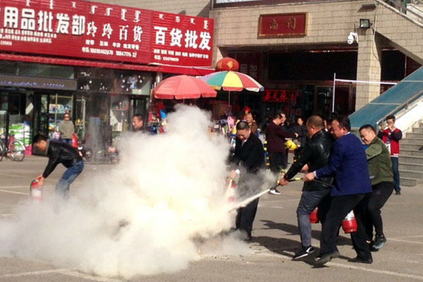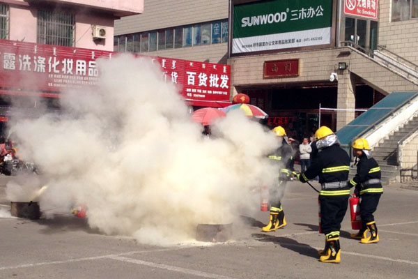 第三項首先由穿戴消防服裝的(de)演習(xí)實操人(rén)員(yuán)進行(xíng)現(xiàn)場(chǎng)滅火(huǒ)演↑練後,商戶門(mén)也(yě)參與了(le)滅火(huǒ)演練;