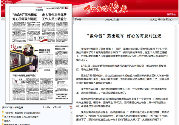轉載自(zì)呼和(hé)浩特晚報(bào) 2019年(nián)2月(yuè)1日(rì)