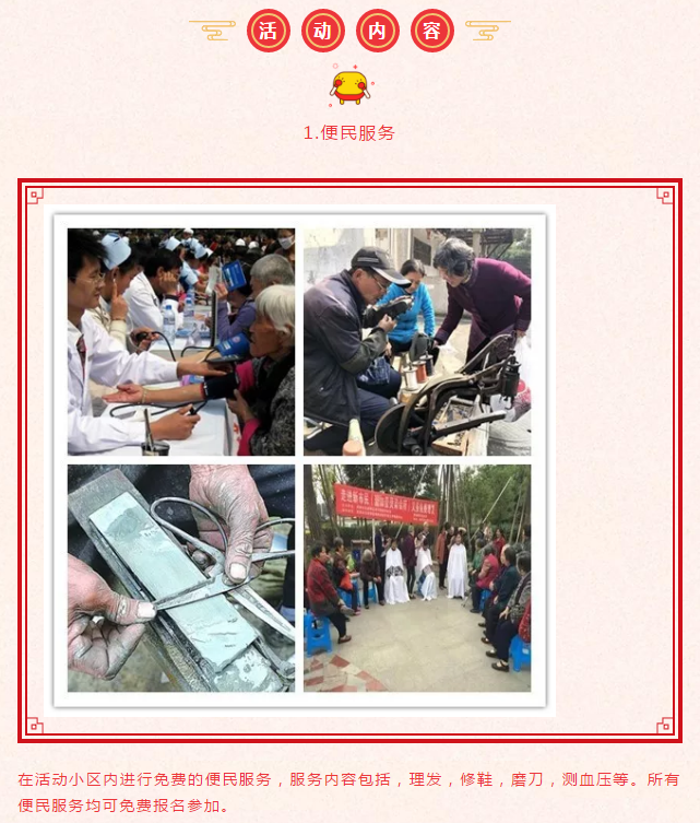 (後面我們會(huì)陸續在微(wēi)信公衆号推出其它小(xiǎo)區(qū)的(de)便民(mín)服務進社區(qū)活♦動信息)