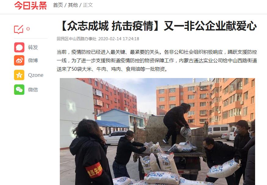 | 轉載【衆志(zhì)成城(chéng) 抗擊疫情】又(yòu)一(yī)非公企業(yè)獻愛(ài)心 |