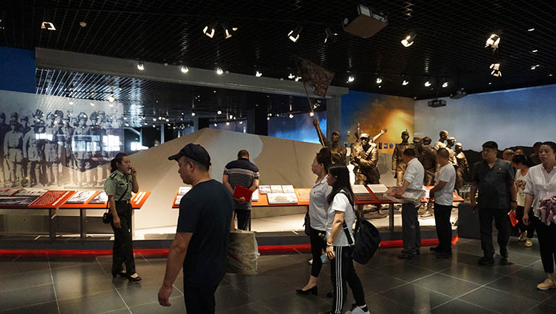 黨員(yuán)同志(zhì)們聆聽(tīng)講解員(yuán)講解大(dà)青山(shān)地(dì)區(qūγ)革命史,重溫黨的(de)光(guāng)輝曆史傳承紅(hóng)色基因。
