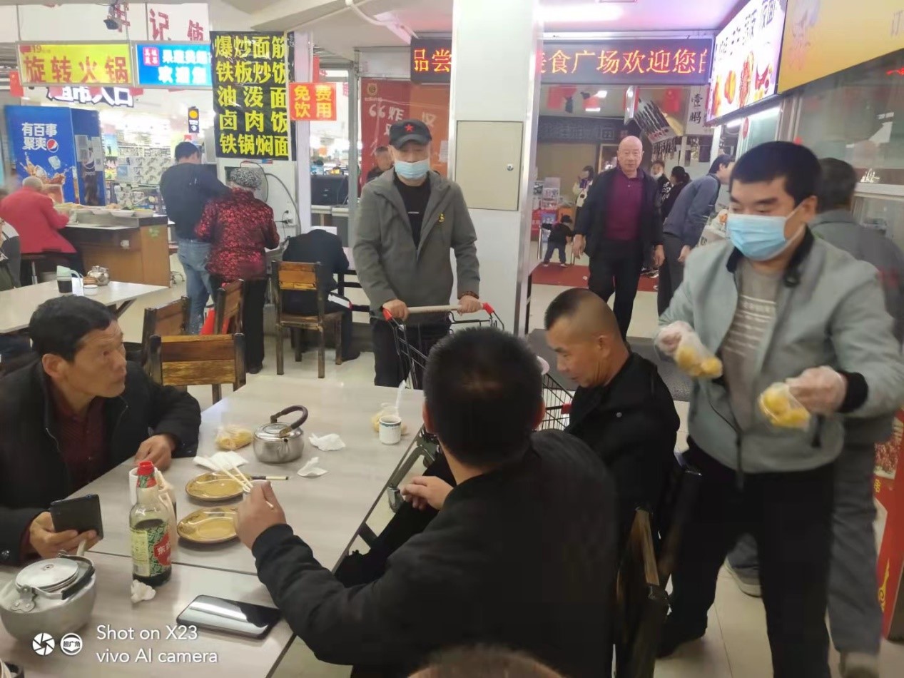 今天是(shì)九·九重陽節,美(měi)食檔口客流增加,市(shì)場(chǎng)也(yě)為(wèiε)就(jiù)餐的(de)顧客免費(fèi)贈送炸糕一(yī)份。