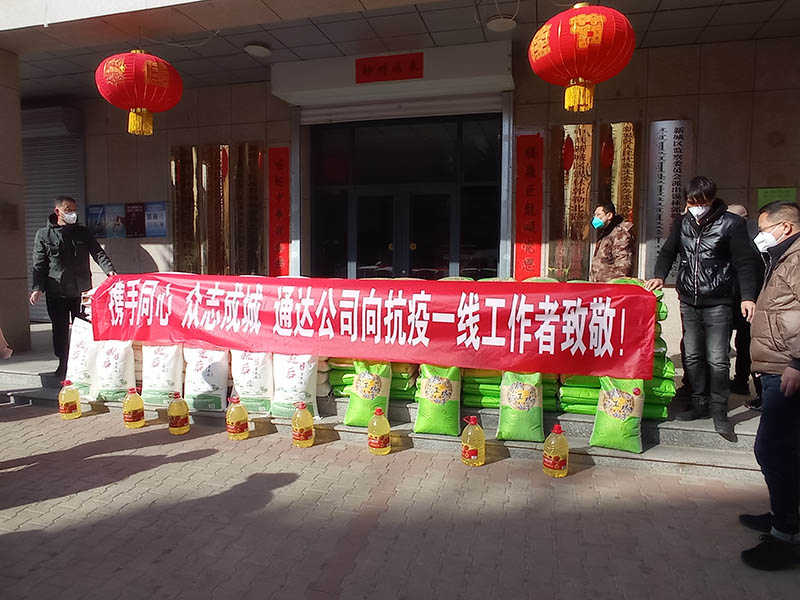 在我市(shì)新冠肺炎疫情防控進入關鍵時(shí)期,我公司全力踐行(xíng)“德、行(xíng)、仁、責、修”的(de)核心價值觀,積極擔負起了(le)應盡的(βde)社會(huì)責任。根據前期了(le)解到(dào)的(de)情況,通(tōng)達商場(chǎng)總經理(lǐ)王江同志(zhì)代表通(tōng)達公司、通¶(tōng)達黨委、善愛(ài)之舟向錫林(lín)北(běi)路(lù)街(jiē)道(dào)辦事(shì)處送去(qù)3000斤白(bái)∞面、3000斤大(dà)米和(hé)40升色拉油。