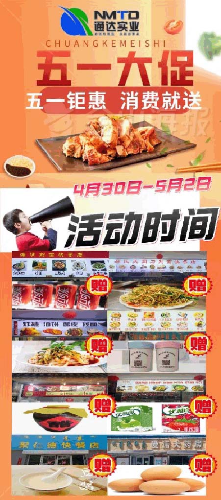 便民(mín)五一(yī)營銷活動4月(yuè)30日(rì)正式啓動,通(tōng)過前期多(duō)次和(hé)商戶溝通(tōng),共同确定回饋顧客方式不(bù)重樣的(de)模式,≥ “維護各自(zì)老(lǎo)顧客”“開(kāi)發新顧客”能(néng)讓到(dào)店(diàn)新老(lǎo)顧客感覺暖心的(de)作(zuò)用(yòng)。
