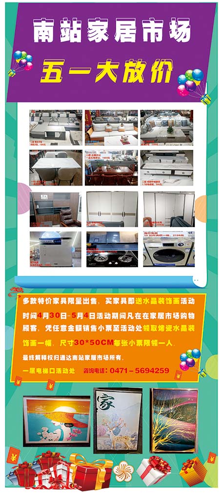 家(jiā)居市(shì)場(chǎng)"五一(yī)大(dà)放(fàng)價"營銷活動,配合節日(rì)活動營造節日(rì)氛圍,場(chǎng)外(wài)α空(kōng)飄條幅布置,家(jiā)居市(shì)場(chǎng)戶外(wài)樹(shù)立了(le)6顆空(kōng)飄氣球,渲染了(le)節日(rì)氣氛,廣而告之的(de)宣傳手段,一(yī)定程度上(shàng)提升了(l♠e)市(shì)場(chǎng)活動的(de)社知(zhī)曉度! 會(huì) 場(chǎng)內(nèi)買贈有(yǒu)禮活動火(huǒ)±熱(rè)進行(xíng)中。